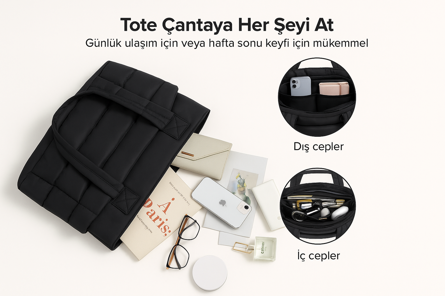 📁 Çoklu Akıllı Cepler: Su şişesi, telefon, cüzdan ve günlük eşyalar için düzenli saklama alanı.