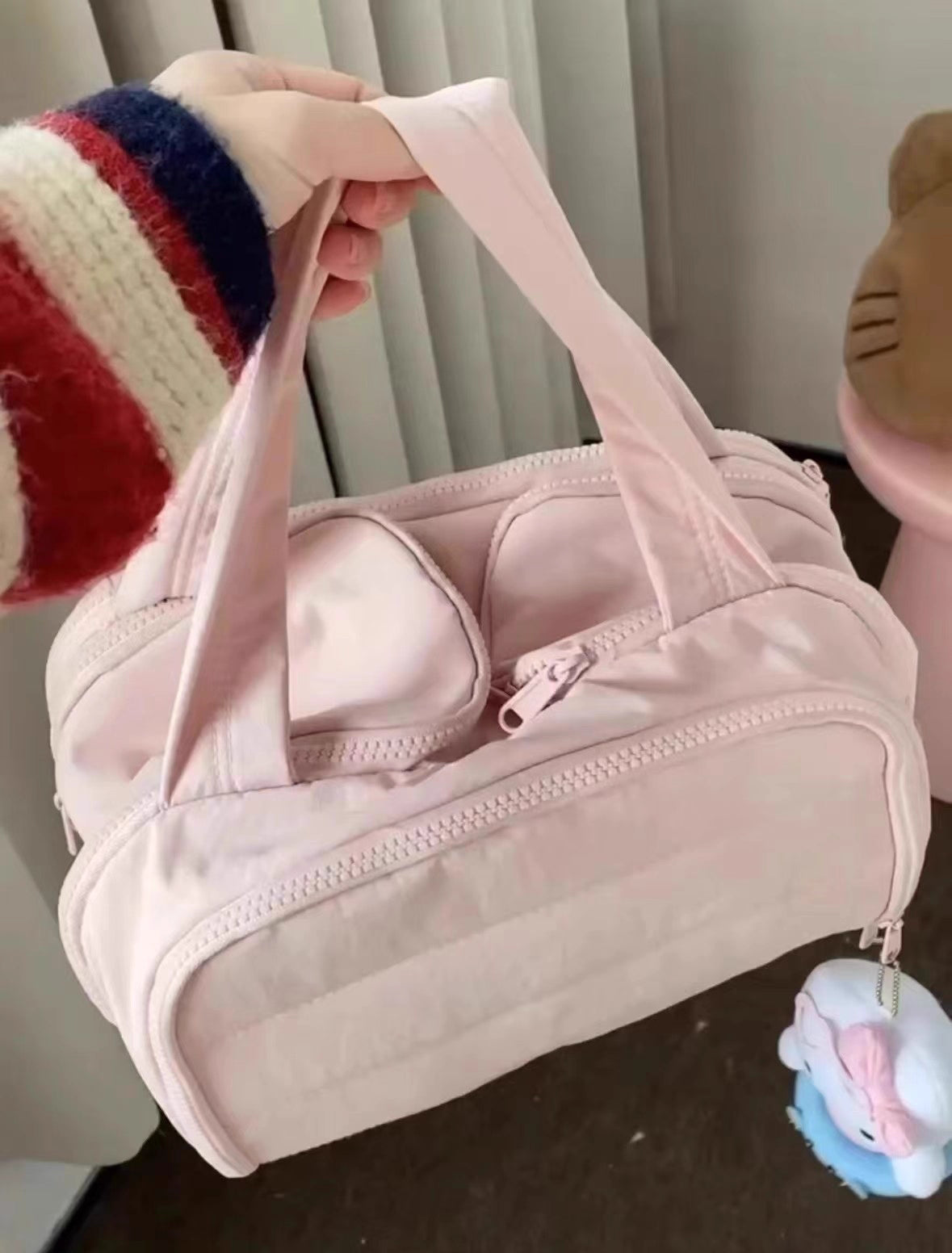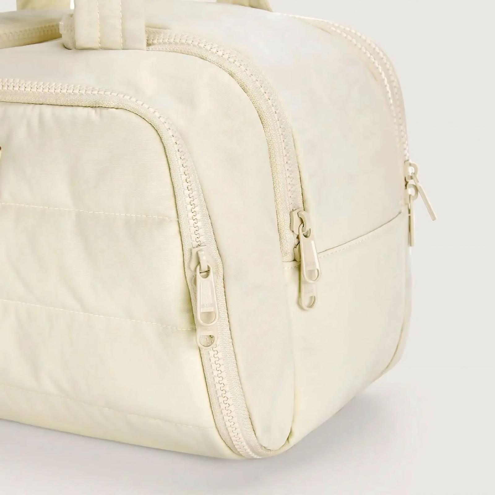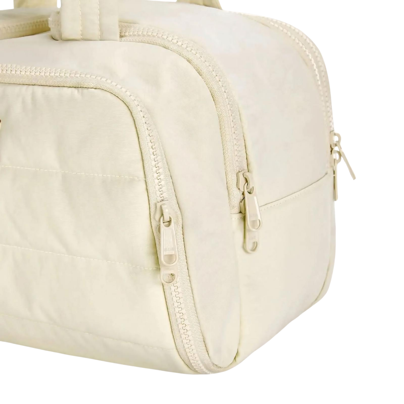 Konik duffle çanta formundan ve bulutlardan ilham alınarak tasarlanan organizer, zarafetin vücut bulmuş halidir. Elde taşıyın ya da valizinize yerleştirin; her ortamda şıklığıyla fark yaratır.